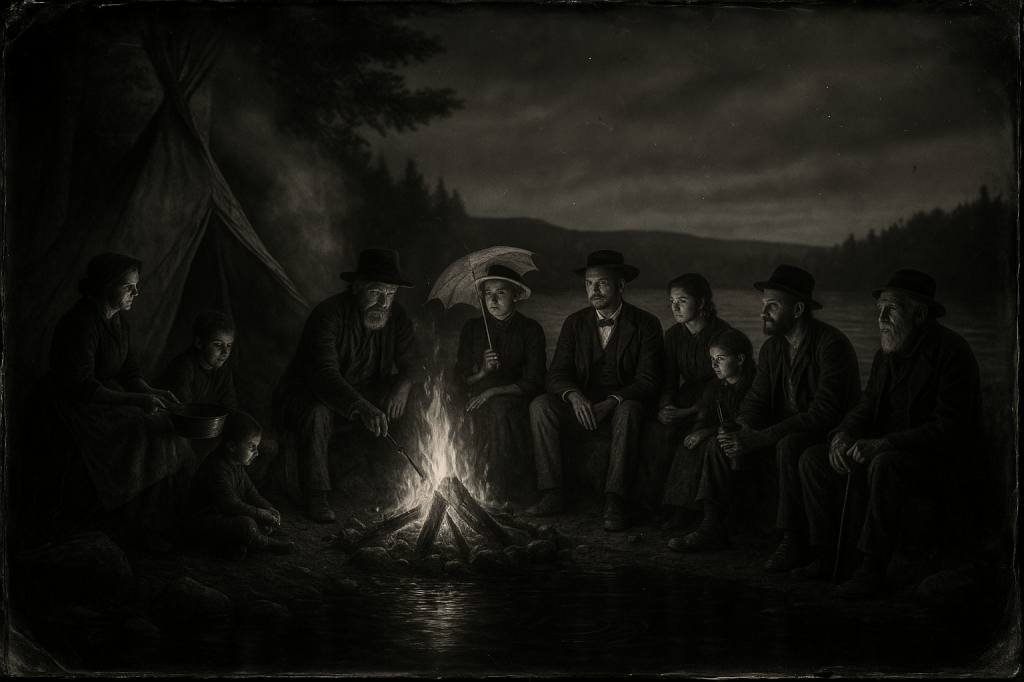 This episode contains historically accurate depictions of frontier isolation, spectral visitation, pine-sap dread, backwoods psychological unraveling, and—most chilling of all—milfoil possession. Listener discretion is advised. Do not consume near dense fern cover, fire rings, or unblessed rowboats.
