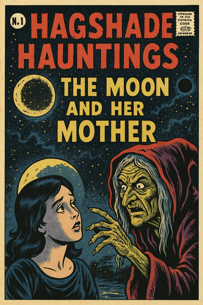 “Change your shape,” croaked her Mother from the black water’s edge, “or wear the half-light always.” The Moon, trembling, tried fullness: her orb bloated—then ruptured, raining oil-slick tears into the reeds. Swamp frogs drowned in the silver sludge.