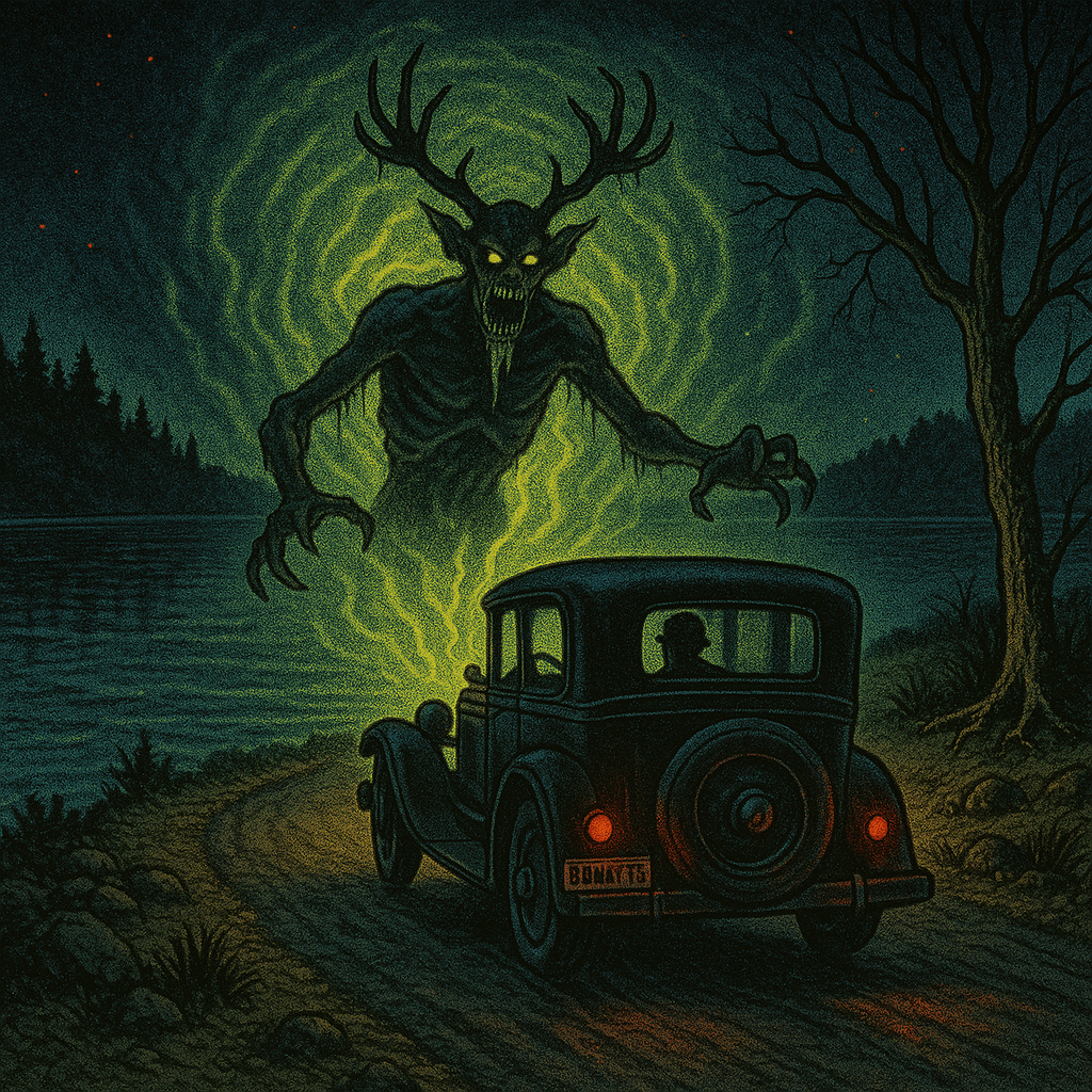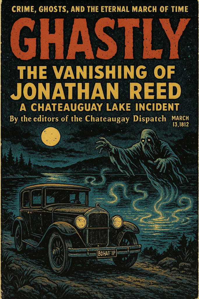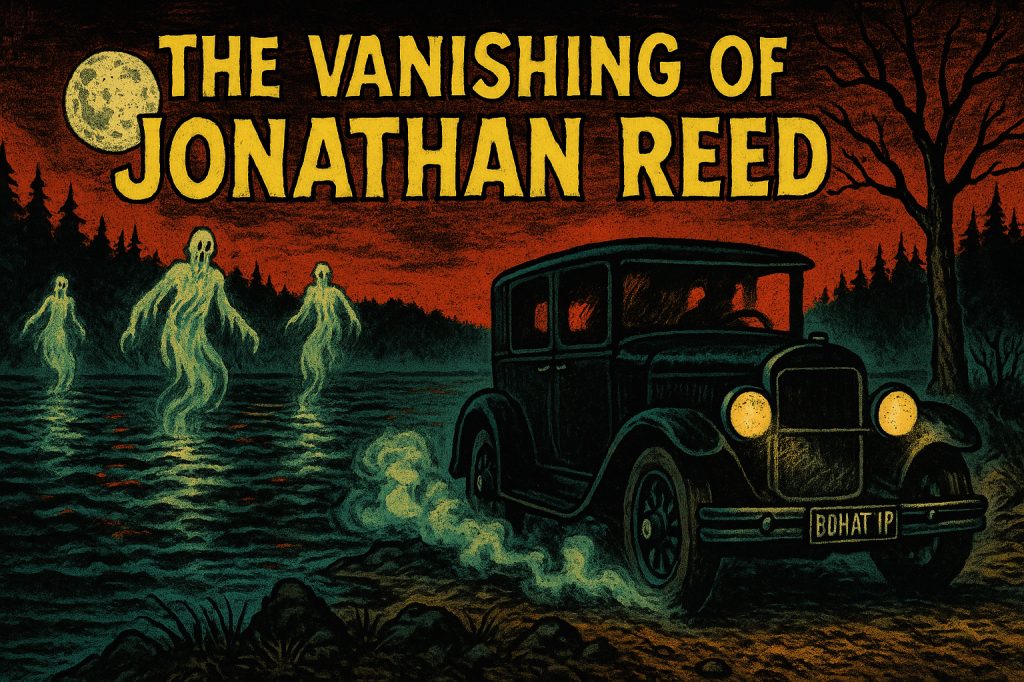 Jonathan Reed vanished from Chateaugay Lake in the summer of 1837, leaving behind a frantic journal filled with talk of ghost lights under black water 💡🌌, whispering shadows 🌬️👤, and a “dark something” older than the pines. Since then: strange vanishings, lights flickerin’ across the Narrows, and sightings of the impossible roadster BOHAT 1P 🚗✨—a machine out of no known year—patrolling the shoreline.
