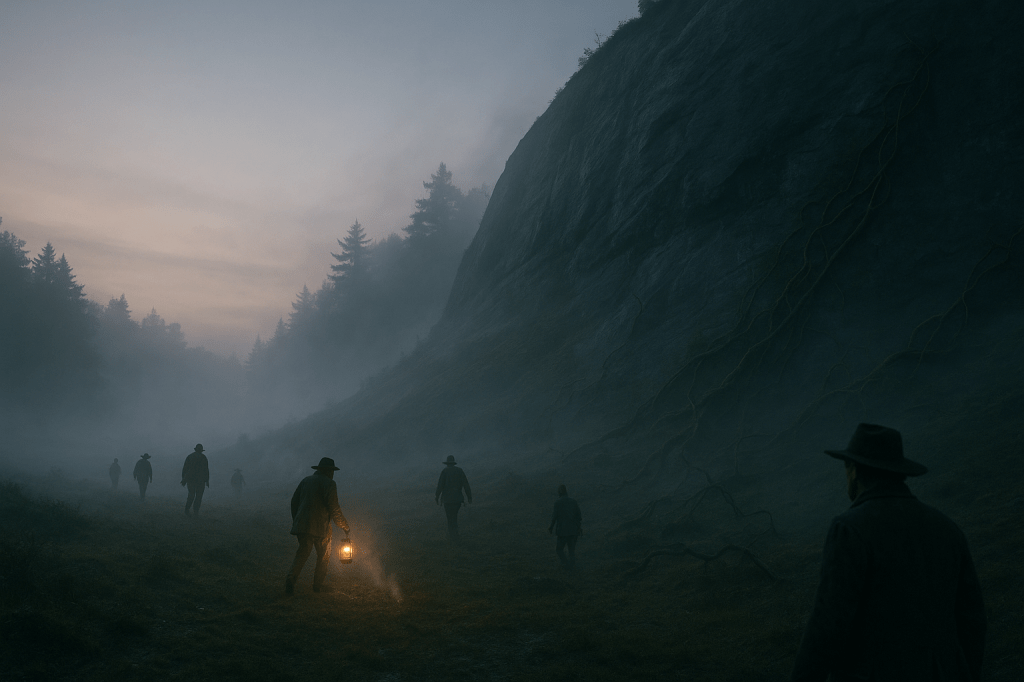 And as the lanterns dimmed, the crowd dispersed, muttering of bands forming in Popeville, brass and correct, to ward off the dark—yet each man walked alone, back to homes that now felt watched. Up on Larrabee, the crevice waited, vines twisting anew, nature’s tribunal ever vigilant, ever expanding its reach. Played out, some said, but the hill knew better, and so did the shadows that followed them home.