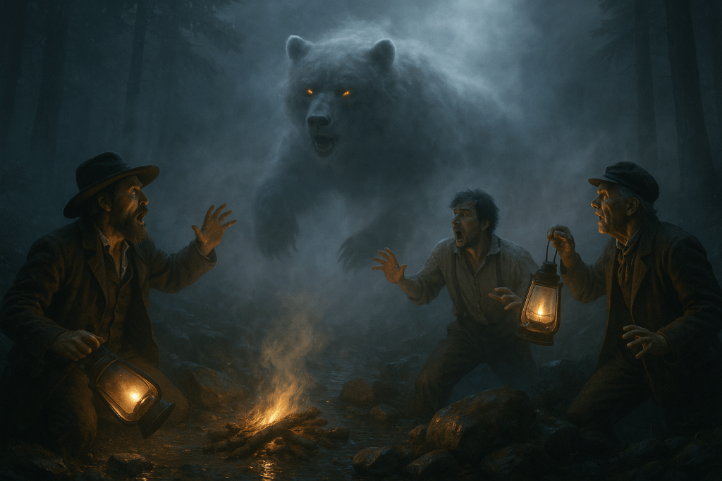 Contains eerie frontier justice, spectral fauna, mild historical blasphemy, and one regrettable incident of being devoured by an incorporeal bear. Reader discretion—and lantern oil—strongly advised; the hill’s appetite remains uncertain.