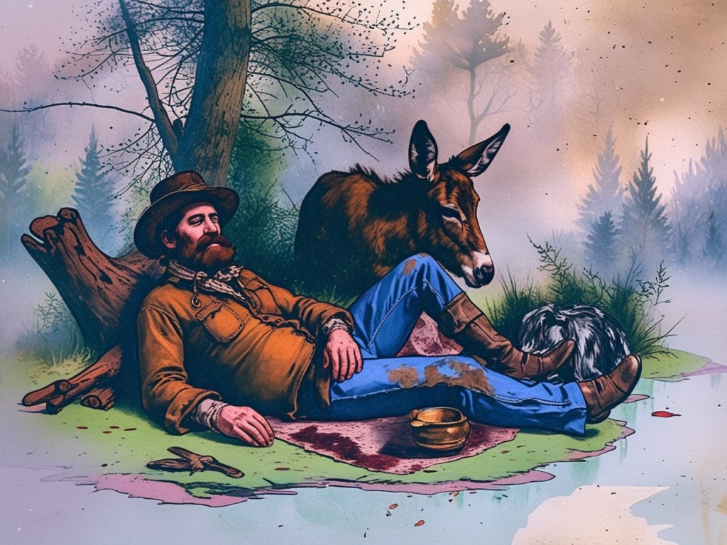 Here old Sangamo ambles in, donkey leading, to save us from folly. Moses St. Germain—Sangemo, Sangamo, or whatever form the name took after three taverns and two accents—was a real woods figure tied to Chazy Lake and the carries, not chairman of any Society for Distressed Reflections. Hammond describes a frightful forest racket that could prime a rifle and sober a bold man—only to reveal old Sangamo asleep beside a deer while his donkey delivered the Judgment. That’s truer sandbar philosophy: not dimensions, but mishearing; not duplicate selves, but one ragged beast braying for six denominations and a school board. If any apparition ruled that upper beach, it was likelier Sangamo’s donkey than a settlement of watery self-critics.