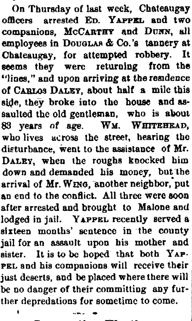 The old case of Carlos Daley, set upon near Chateaugay by Ed Yappel and his hard companions, is brought forward again with a gravity that suits the season. From Daley’s darkened house to the stone belly of the Malone jail, the track appears plain enough at first, and then it takes to doubling.
