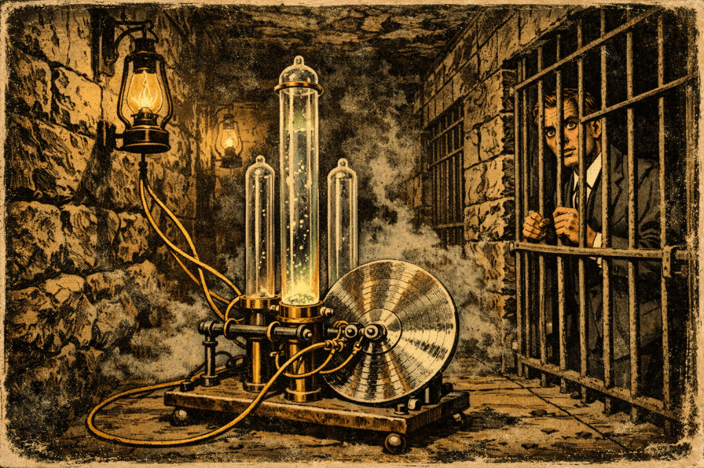 Crystal set owners with tender ears, keep a little light by the chair and set to decent order ere hearing what the Malone stones kept back; this recording cautions against the grim tale of Carlos Daley’s assault by Ed Yappel’s hard companions near Chateaugay; such villainous doings and jailhouse echoes may rattle nerves at a late hour.
