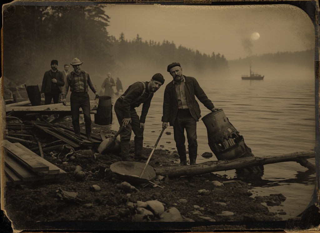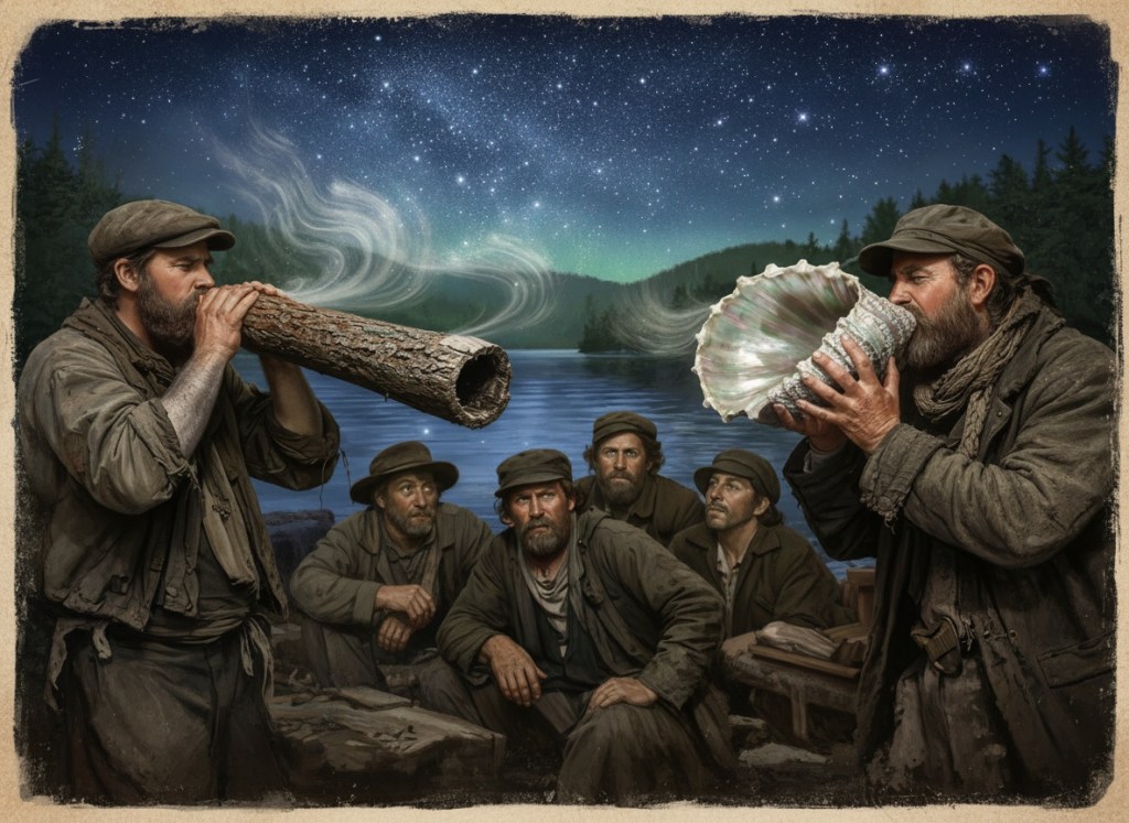 #SteamboatPirateImprovisation #LakefrontFoundSound #DriftwoodPercussionArt #AdirondackRusticSymphony #BogBottleResonance #RustyAnchorFolkExperiment #NocturnalLakeSoundscape #ShoreRubbishOrchestra #PirateFolkAcoustics #WildernessImprovisedMusic