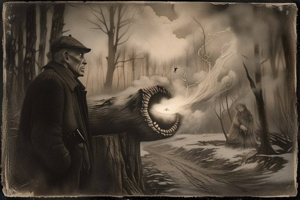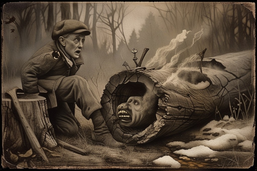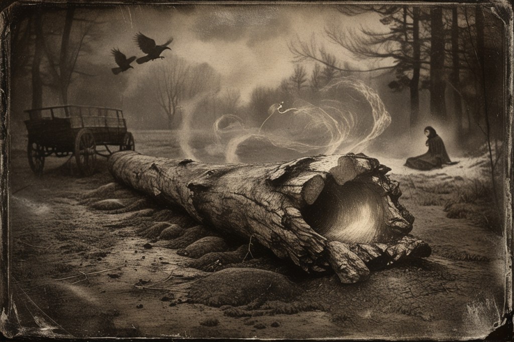 Nevertheless, there remains a stubborn residuum which even common sense has not wholly swept aside.—A reliable man, not given to fancy, declares that while passing the place with an empty jumper at dusk, he distinctly heard from the log the noise of a crowd, then a bell, then what seemed to be a child laughing very far off, and all this though the road was empty and the woods at perfect stand.—A woman of good character states that when the wind is from the northwest the sound changes its disposition, becoming less mournful and more industrious, like distant machinery or the turning of unseen wheels.—A third, older than either and therefore less likely to be imposed upon, says the noise resembles no earthly contrivance, unless perhaps the world itself were trying to snore through a knot-hole.—These testimonies, while not harmonious, are at least discouraging to those who had hoped to dismiss the whole matter as merely another camp-side falsehood hatched for the confusion of children.